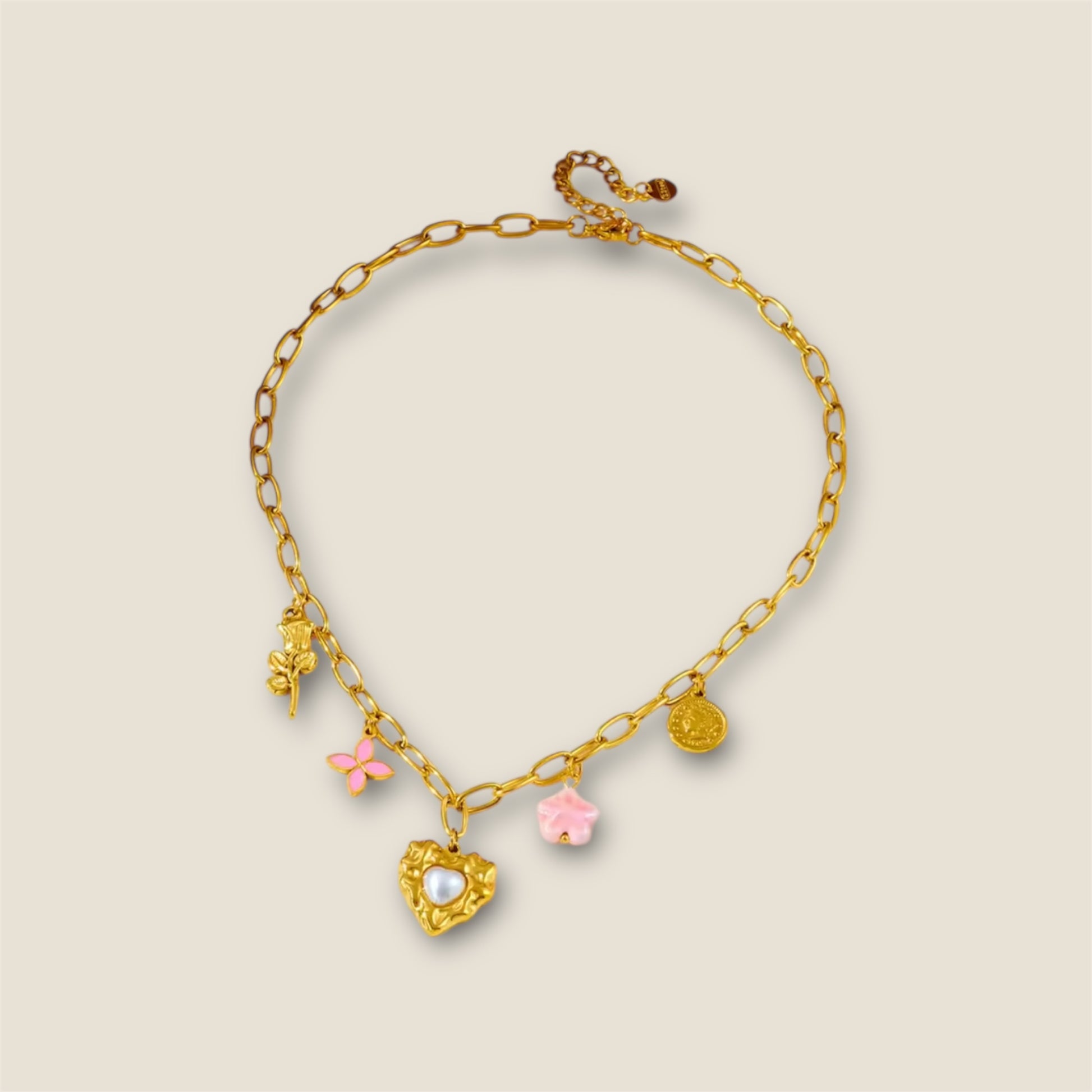 Een verfijnde gouden ketting met unieke bedels die jouw verhaal laten schitteren. Elegant, tijdloos en persoonlijk: een sieraad dat altijd met je meedraagt wat voor jou waardevol is.